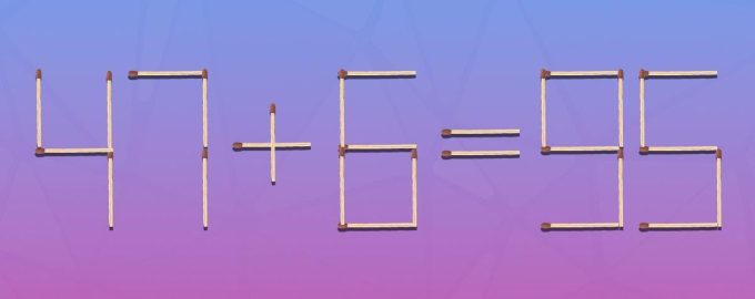Así, hemos creado una imagen en la que las cerillas presentan la igdad 47+6=95. Obviamente, hay algo mal aquí, porque la respuesta debería ser 53.