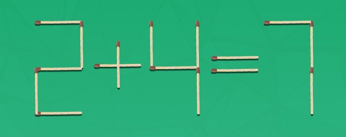 A primera vista, este puzzle de cerillas es muy sencillo, pero no lo subestimes. Para encontrar la solución correcta, necesitarás atención, pensamiento lógico y capacidad para fijarte en los detalles. Tienes que corregir la igdad matemática incorrecta 2 + 4 = 7 formada por 16 cerillas moviendo una de ellas.
