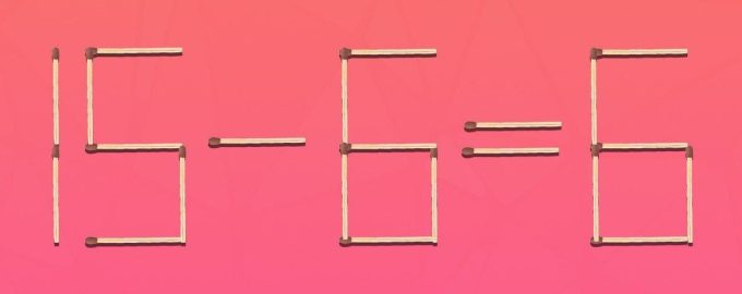 Bueno, vamos a resolverlo juntos. Para obtener una igdad matemáticamente correcta, bastaba con mover la parte inferior izquierda del dígito 6 en medio de la igdad a la parte superior derecha del dígito. Así se obtiene el dígito 9 en lugar del 6. Esto nos da la igdad correcta: 15-9=6.