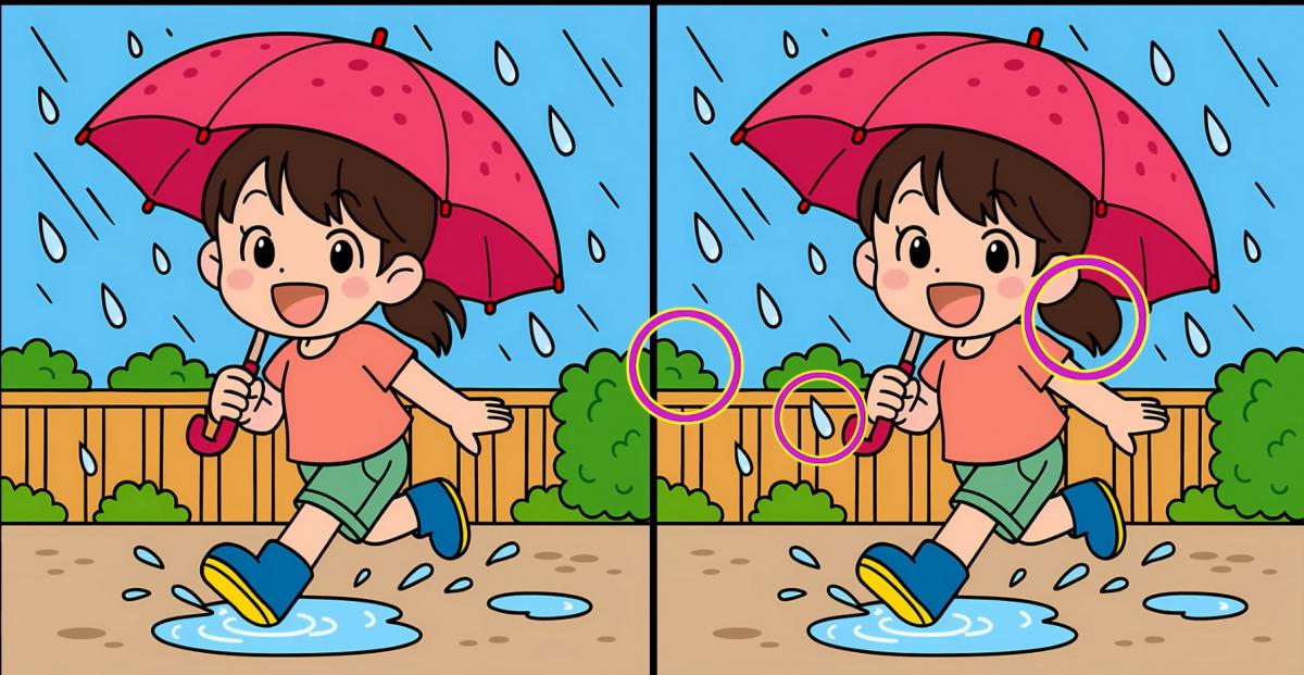 ¿Estás preparado para el siguiente reto? Fíjate bien en las dos imágenes de la chica bajo la lluvia. Pueden parecer iges a primera vista, pero hay 3 pequeñas diferencias. ¿Crees que puedes encontrarlas todas en 47 segundos? ¡Inténtalo y pon a prueba tu agudeza vis!