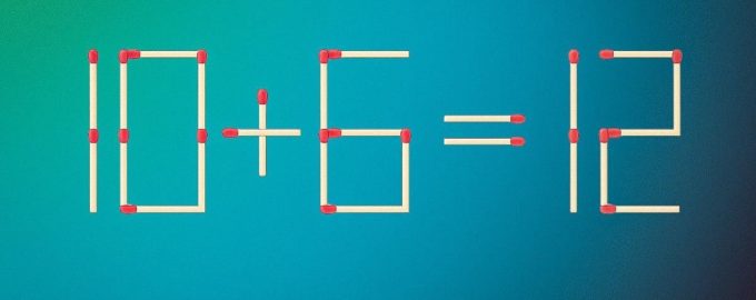 A continión verás una imagen en la que se plantea la igdad 10+6=12 utilizando cerillas. Obviamente, no es matemáticamente correcta. Tienes que corregirla.