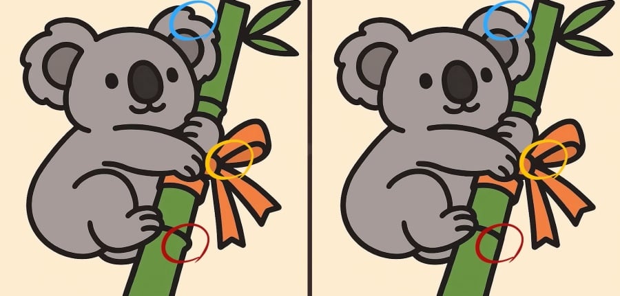 ¿Estás preparado para el siguiente reto? Fíjate bien en las dos imágenes de un koala abrazado al bambú. Pueden parecer iges a primera vista, pero hay 3 pequeñas diferencias. ¿Crees que puedes encontrarlas todas en 33 segundos? ¡Inténtalo y pon a prueba tu agudeza vis!