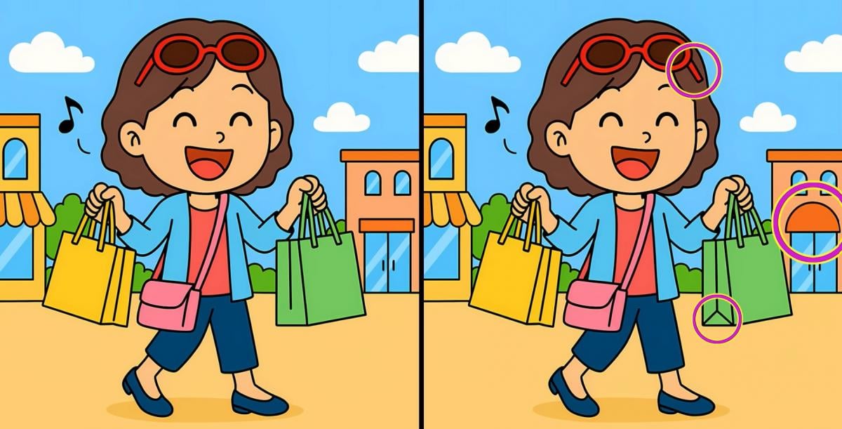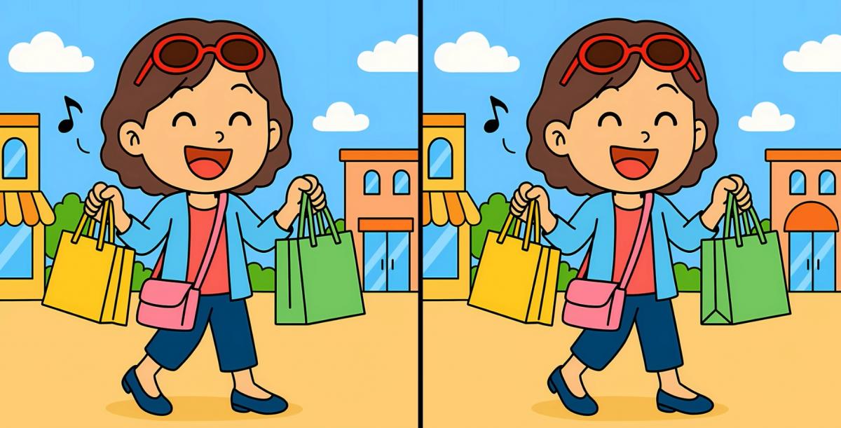 ¿Estás preparado para el siguiente reto? Fíjate bien en las dos imágenes de la chica con las bolsas de la compra. Pueden parecer idénticas a primera vista, pero hay 3 pequeñas diferencias. ¿Crees que puedes encontrarlas todas en 71 segundos? ¡Inténtalo y pon a prueba tu agudeza vis!