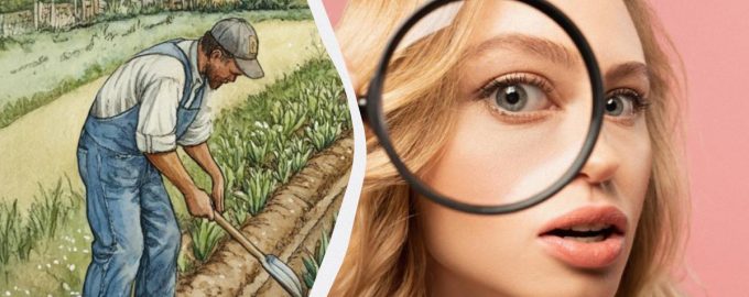 Estamos seguros de que has afrontado esta tarea con bastante rapidez. Es muy sencillo: uno de los hombres está trabajando en el campo con una escoba normal.
