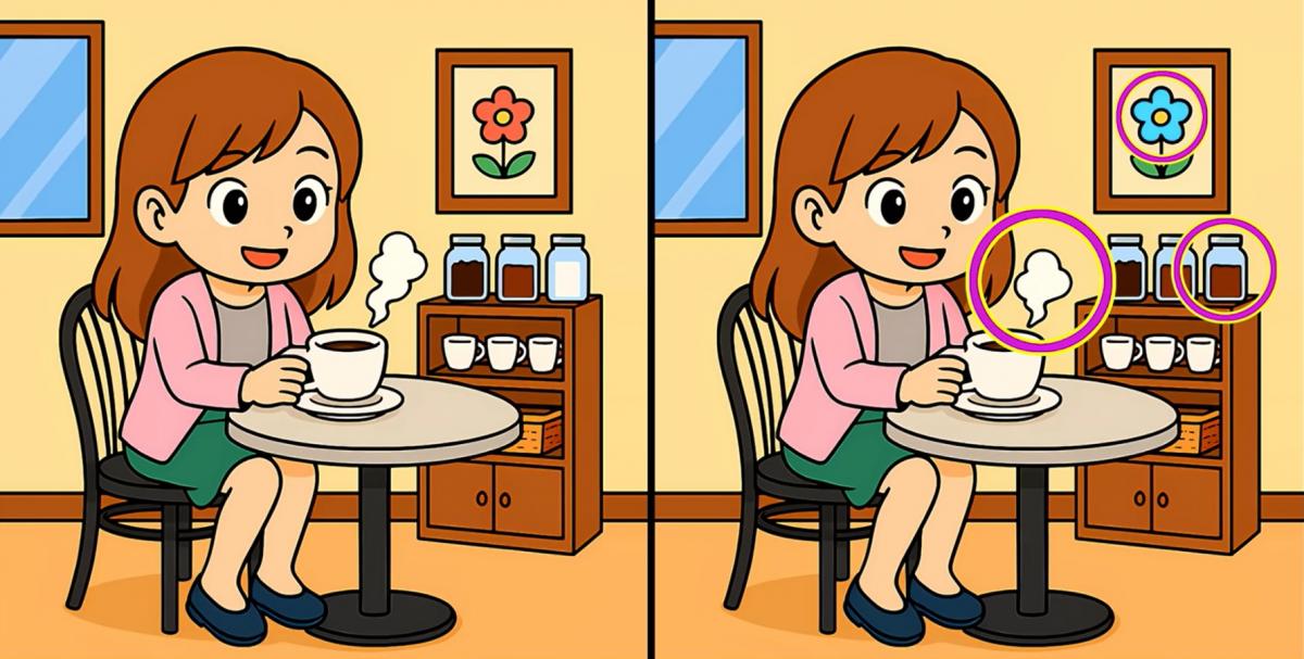 ¿Estás preparado para la siguiente tarea? Observa detenidamente dos imágenes de una chica tomando café. A primera vista pueden parecer idénticas, pero hay 3 pequeñas diferencias. ¿Crees que puedes encontrarlas todas en 19 segundos? ¡Inténtalo y pon a prueba tu agudeza vis!