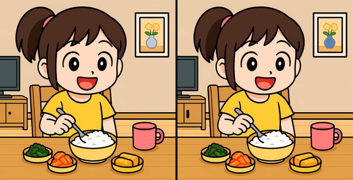 ¿Estás preparado para la tarea? Fíjate bien en las dos imágenes de la chica en la mesa. Pueden parecer idénticas a primera vista, pero hay 3 pequeñas diferencias. ¿Crees que puedes encontrarlas todas en 49 segundos? ¡Inténtalo y pon a prueba tu agudeza vis!